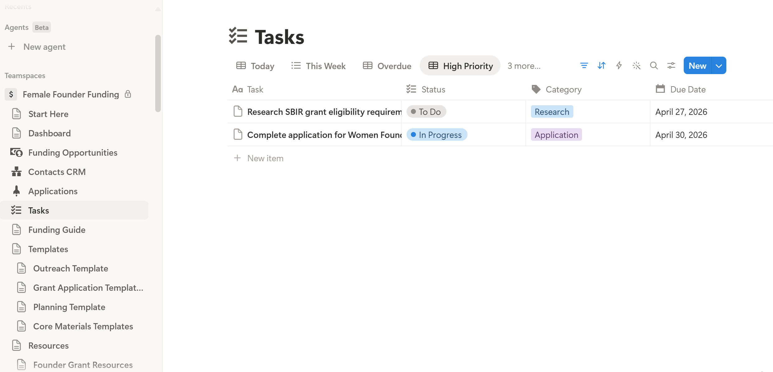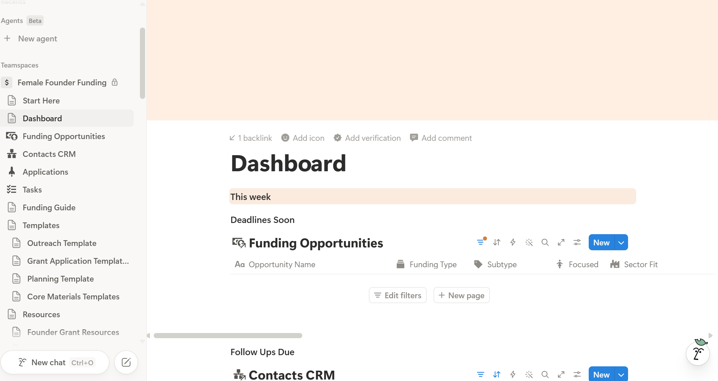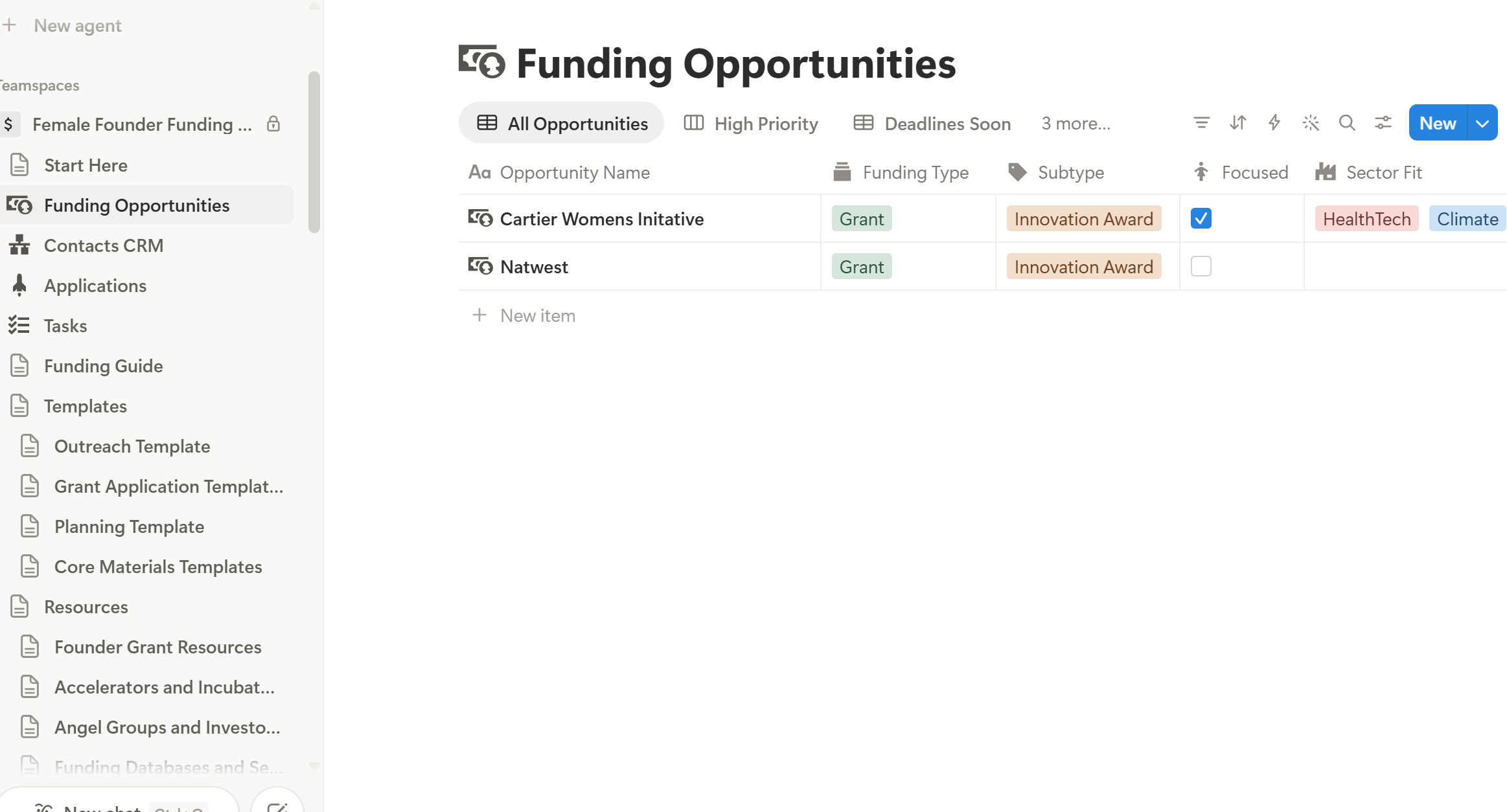 • You’ll get a Notion link to the full Female Founder Funding Finder workspace.